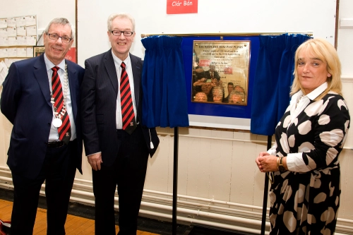 PPU President, Brian Duncan, Des Byrne and Principal Kate Byrne perform the unveiling ceremony.