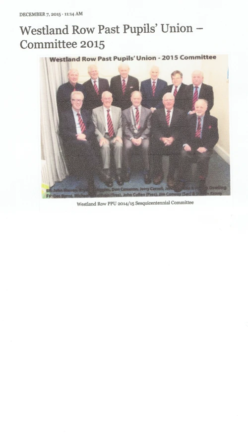 The PPU Annual General Meeting will take place on April 6th. at 7 pm in the school and we urge as many past pupils as possible to come along and make your voices heard. The committee has been very busily engaged over the last few years with the 150th anniversary events and the publication of Cuimhneachan which was launched at the annual dinner in January. We are still hard at work on projects to commemorate 1916 and will shortly be announcing important events to remember past pupils who gave their lives and who participated in the struggle for the freedom we enjoy today – watch this space. In the meantime, we look forward to seeing you on the 6th. when all the old geezers in the photo below will be up for re-election. Jim Conway, PPU Hon. Sec.