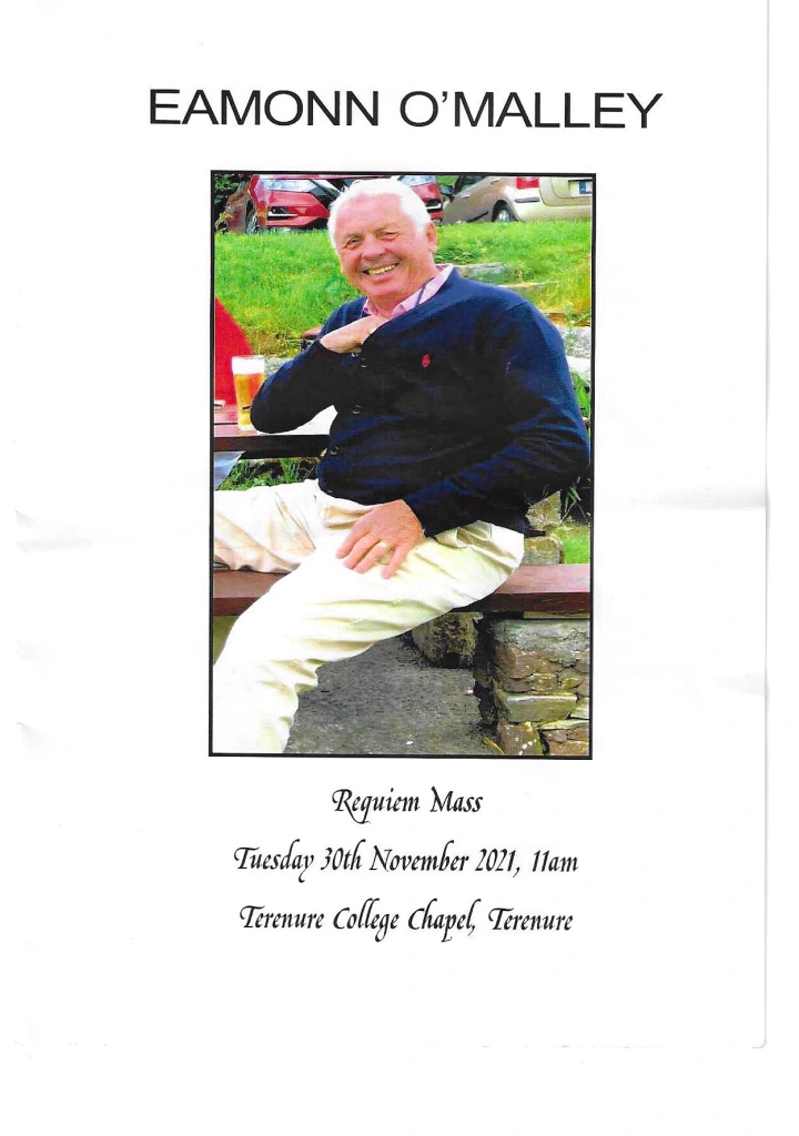 The funeral Masses for two of our old classmates, Tony Rowe and Eamonn O’Malley, took place recently, may they rest in peace. We bid them a fond farewell and attach below copy of the covers of their Mass leaflets as a memento.
