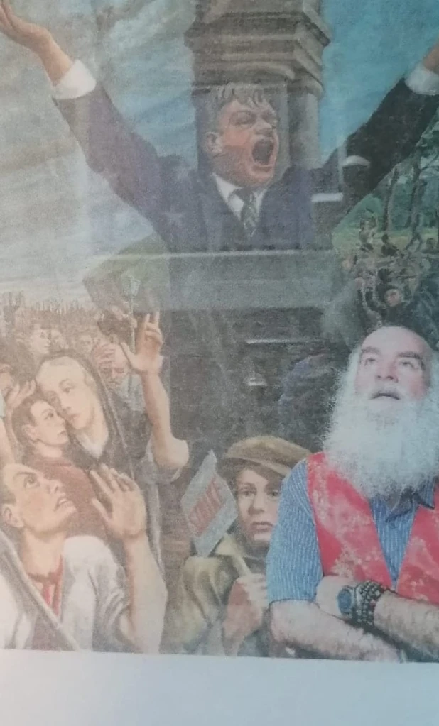 Jack was pictured (above with the beard) beside a historic banner illustrating the Workers’ Union 0f Ireland, which was formed in 1924 and merged with the ITGWU in 1990 to form SIPTU.