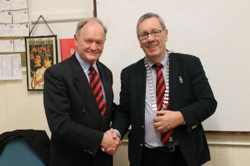 President, Des Donnelly, hosted his 2016 prize at Woodbrook GC on Friday May 20th. There was a good turnout and the prize was won by last year’s PPU President John Cullen (Class of 64). John is shown below (left) handing over the chain of office to Brian Duncan at the PPU AGM .