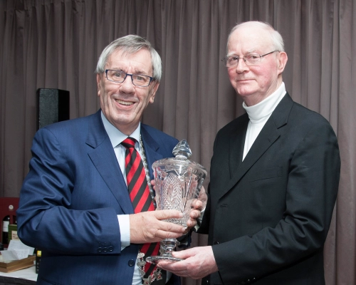President Brian with Fr. Myles and the P V Doyle Trophy